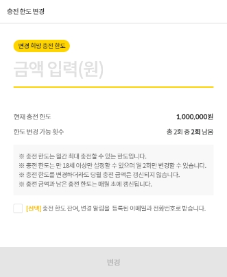 이제 월간 최대 충전할 수 있는 금액을 직접 설정할 수 있습니다.